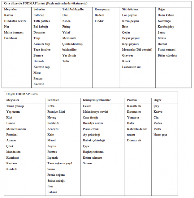 Tüketilen besinlerin FOPMAP içeriği azalınca bağırsaktaki ozmotik yük ve kalın bağırsakta fermentasyon sonucu oluşan gaz miktarı azalır. FODMAP’tan fakir beslenen hastaların yüzde 70’inin IBS bulguları tama yakın geçmiştir. En çok düzelen yakınmalar gaz, şişkinlik ve ishal olmuştur.